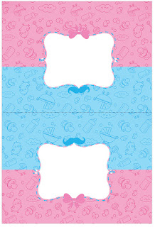 Cute candy bar wrapper templates, great candy buffet labels. Gender Reveal theme is one of the best candy buffet ideas = candy bar ideas = candy tables ideas. You´ll find here a lot of candy wrappers, chocolate wrappers and candy labels: labels for personalized water bottles. Also toppers for your party bags,  For sure all this will give you a lot of Favor Ideas = party goods = party favors!